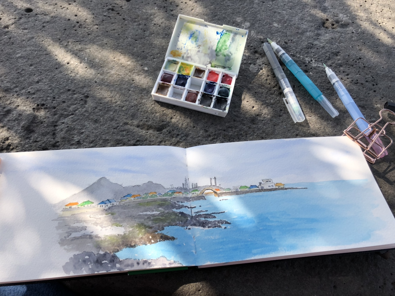 오늘부터 새로운 종이 아르쉬 양장북에 어반스케치.