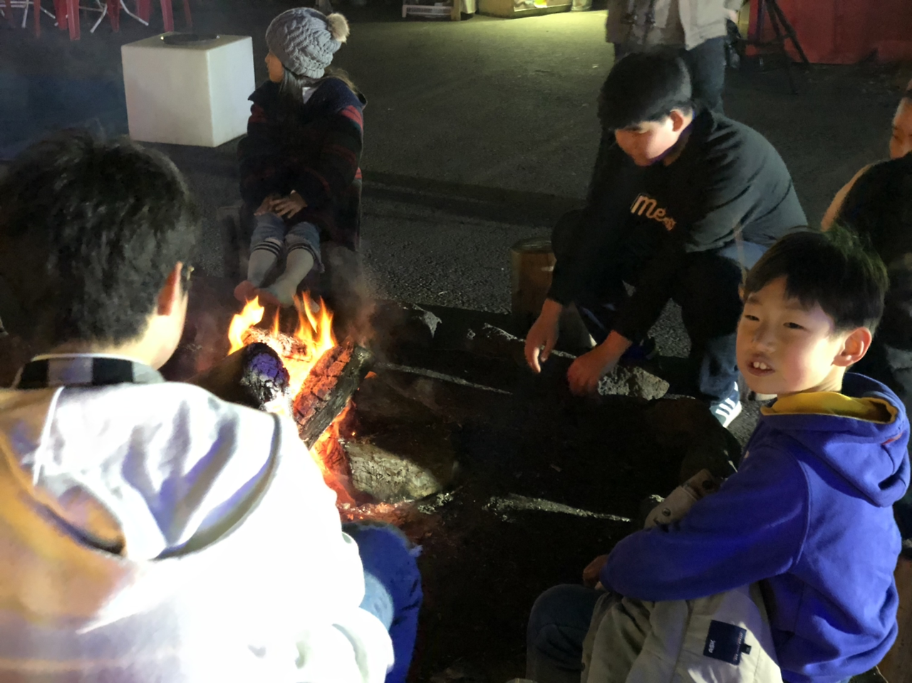 모닥불 앞에서 한참 놀았다.