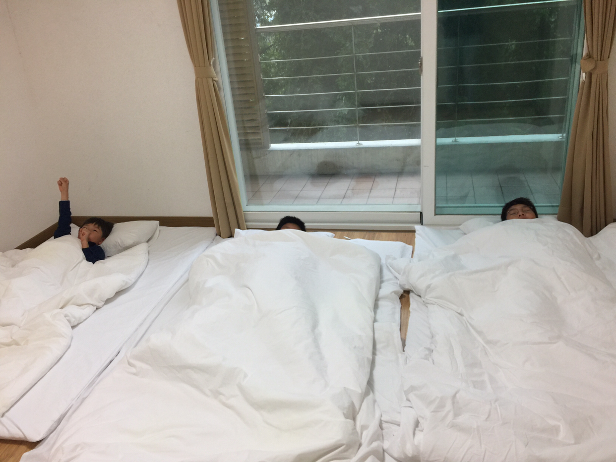 도착하자마자 이불 펴고 누워서 좋아하는 어린이들.