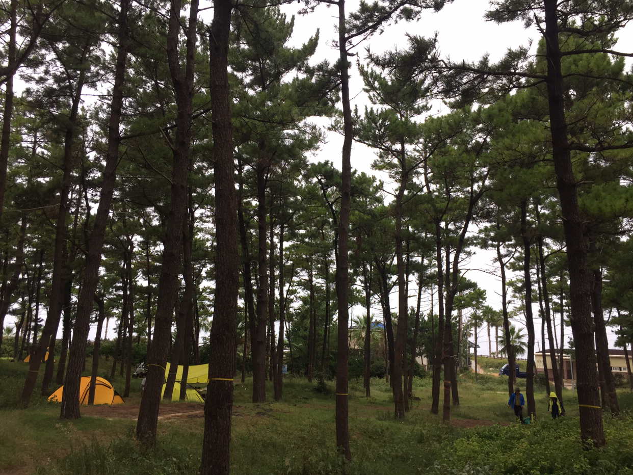 어두운 밤에 도착한 우리는 소나무 숲 속에 텐트를 쳤다.