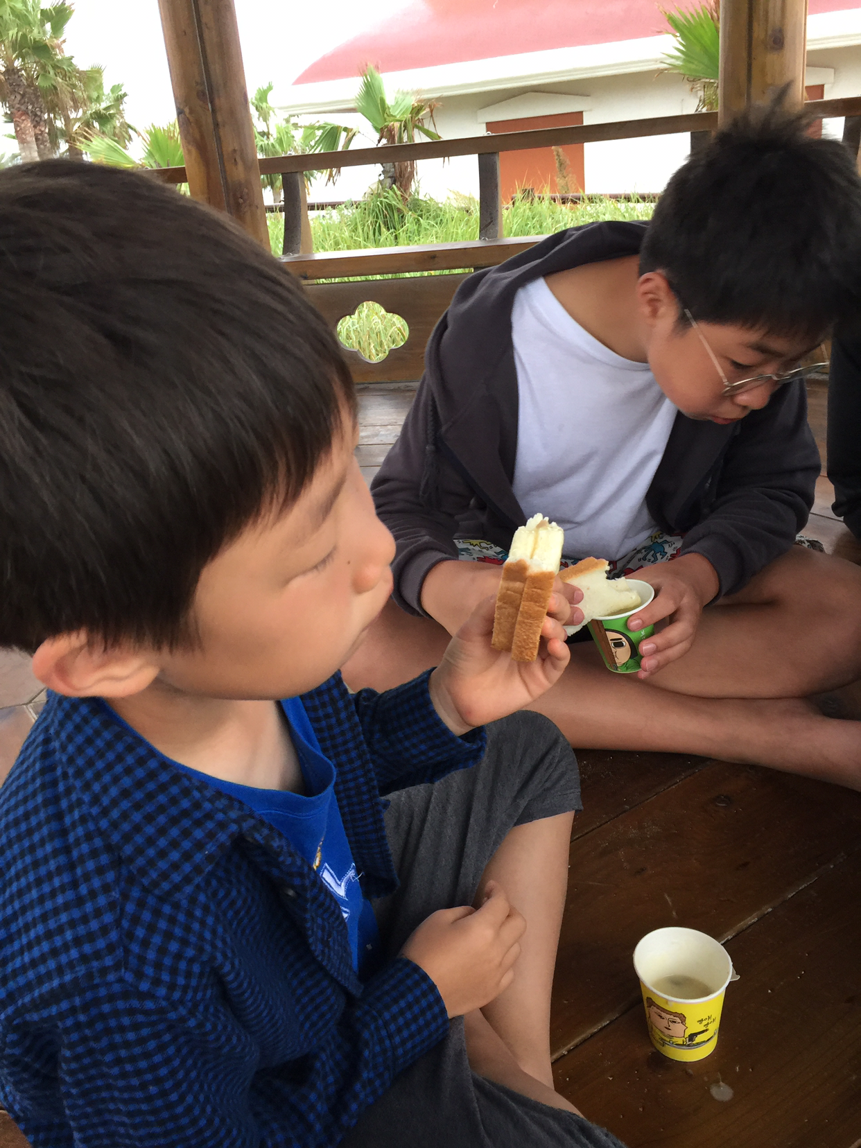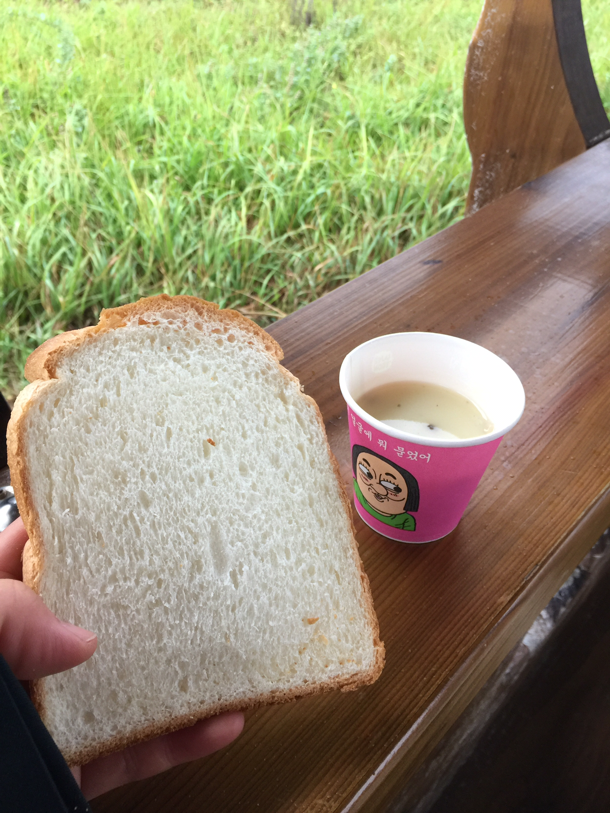 어젯밤 산책하며 눈도장 찍어둔 정자에서 아침밥 해 먹기.
