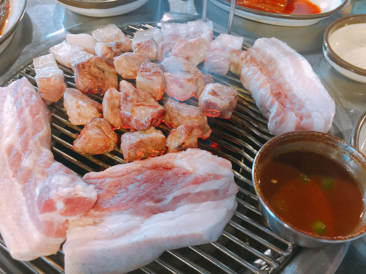좋아하는 흑돼지 삼겹살을 짭짤한 멜젓에 찍어 먹는 기막힌 맛!!
