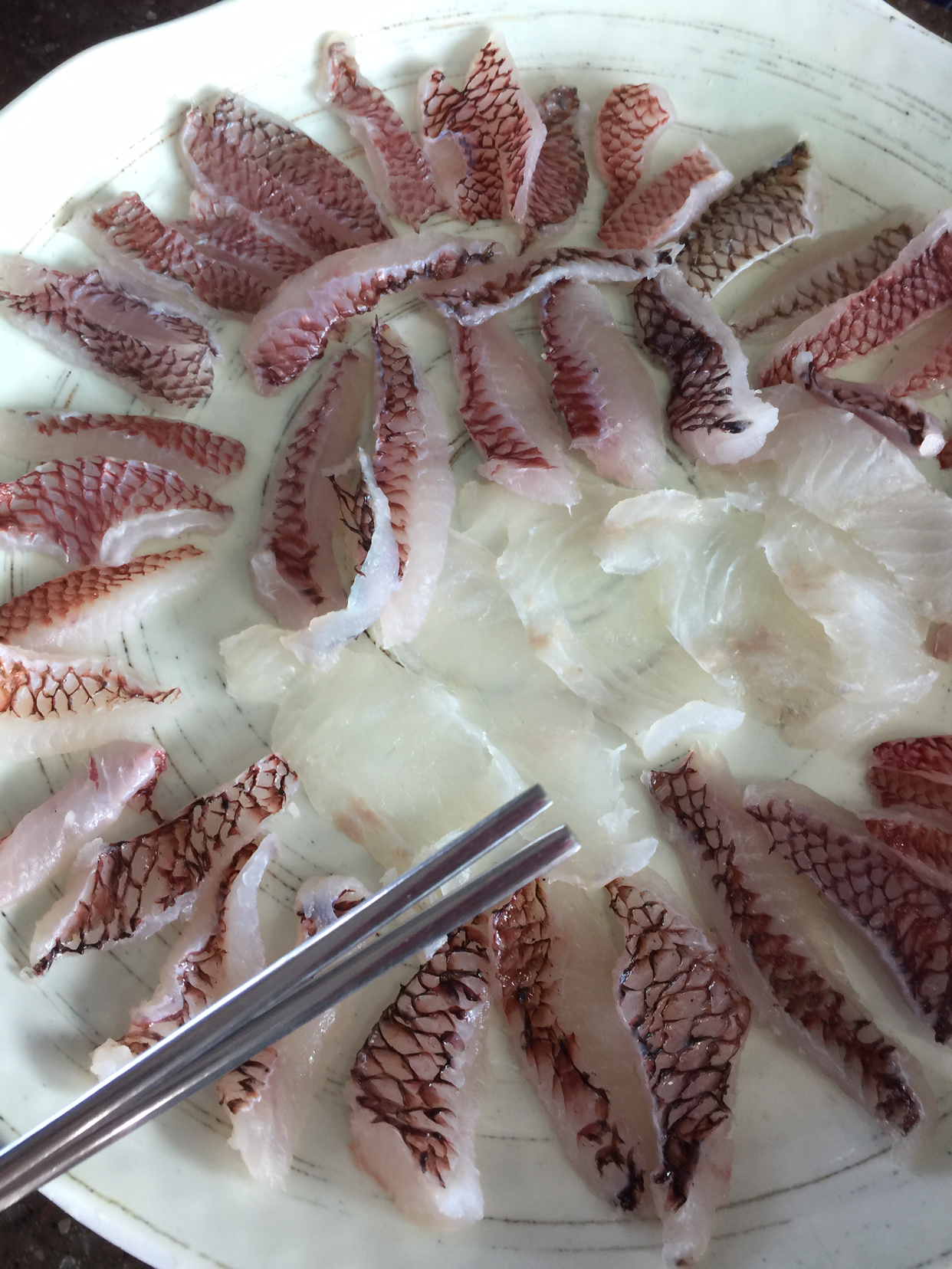 잡은 고기는 회로 먹을 수 있는데, 먹는 재미보다는 잡는 재미가 쏠쏠~ ㅎㅎㅎ