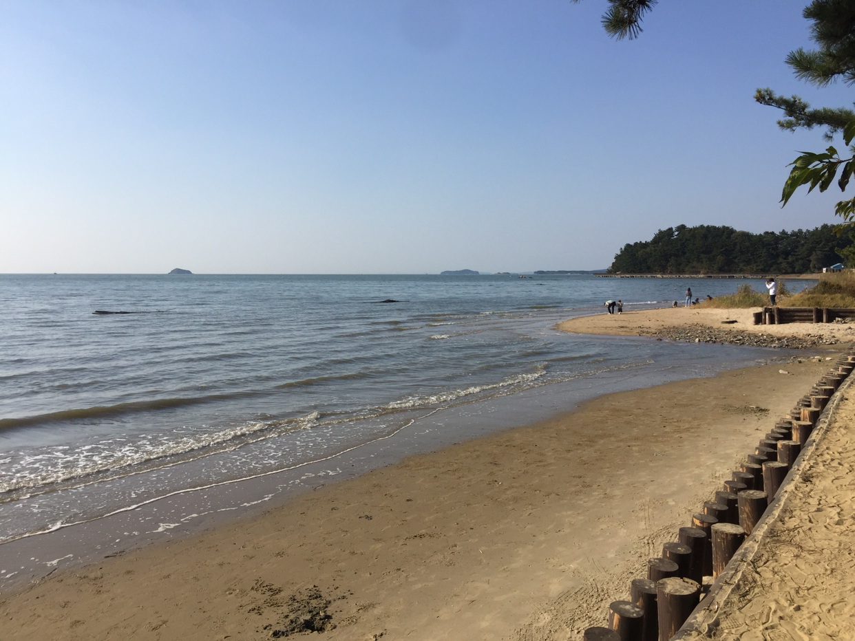 바닷가 모래밭에서 멍 때리며 파도를 보고