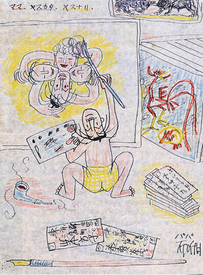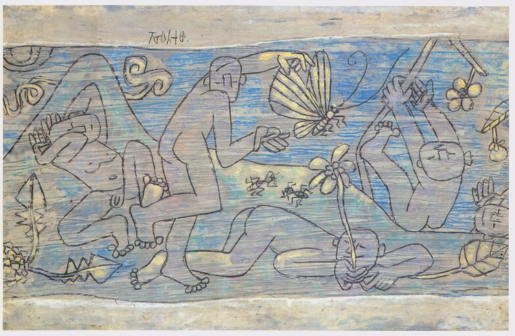 천진하게 벌거벗은 소년들, 물고기, 게, 꽃과 나비들... 서로가 서로에게 연결되어 있는 따스한 그림들!