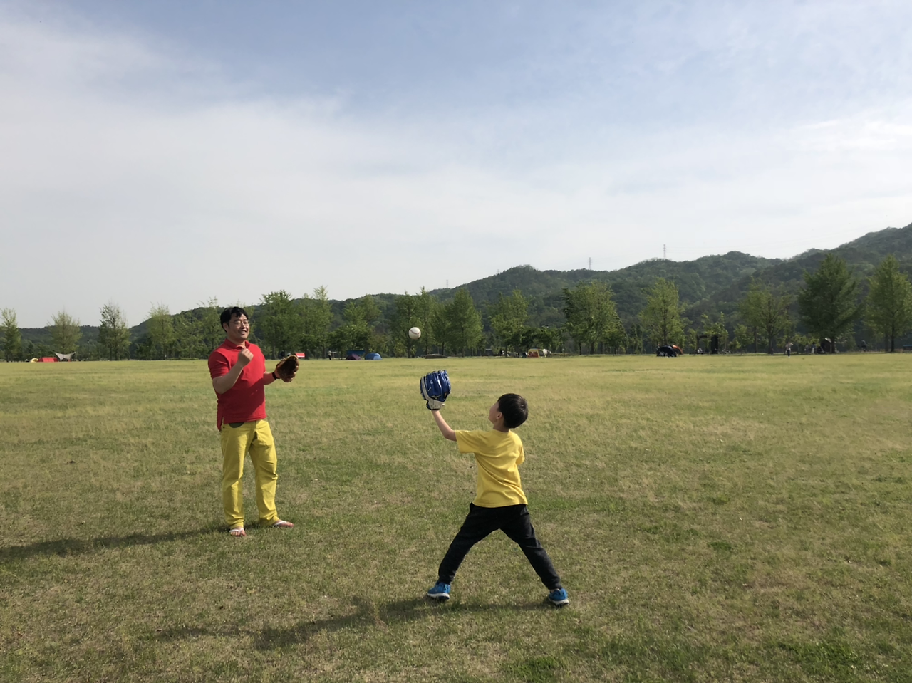 애들은 캐치볼, 남편은 드론 날리기