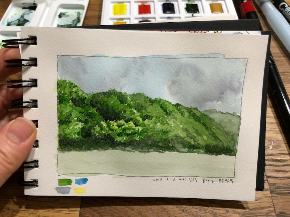 산을 그리는 것이 어려웠는데 시도해 봄.
