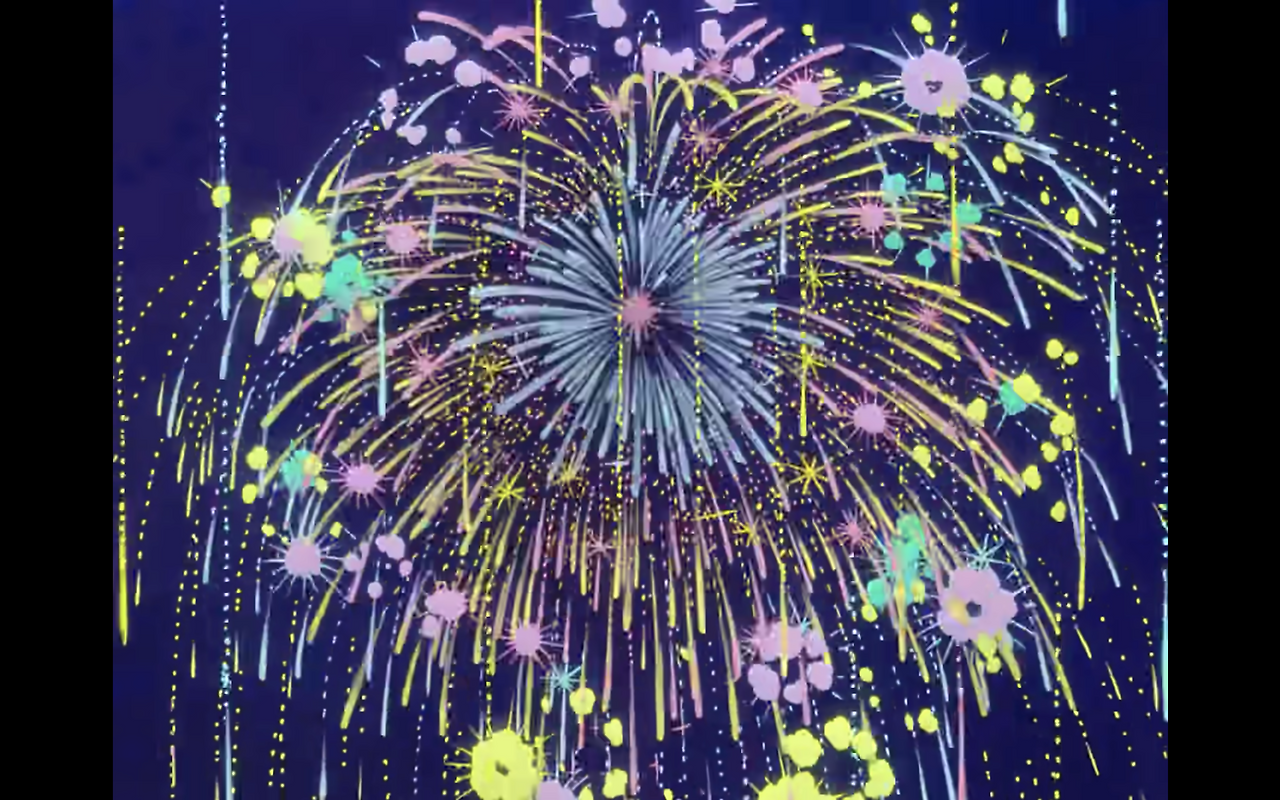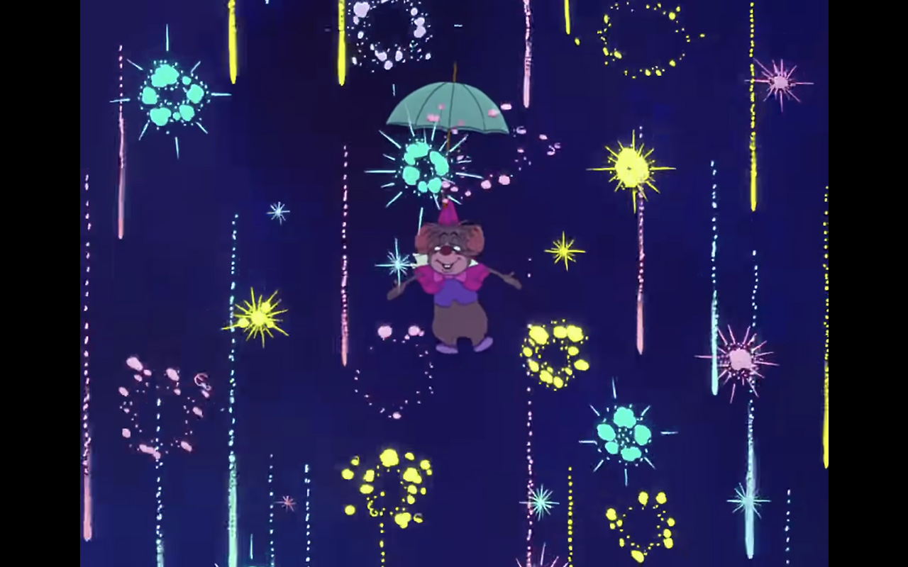 디즈니, 이상한 나라의 앨리스 : ② 티 파티에서 안-생일을 축하하는 불꽃놀이. ③ 폭죽과 함께 떨어지는 겨울잠쥐.
