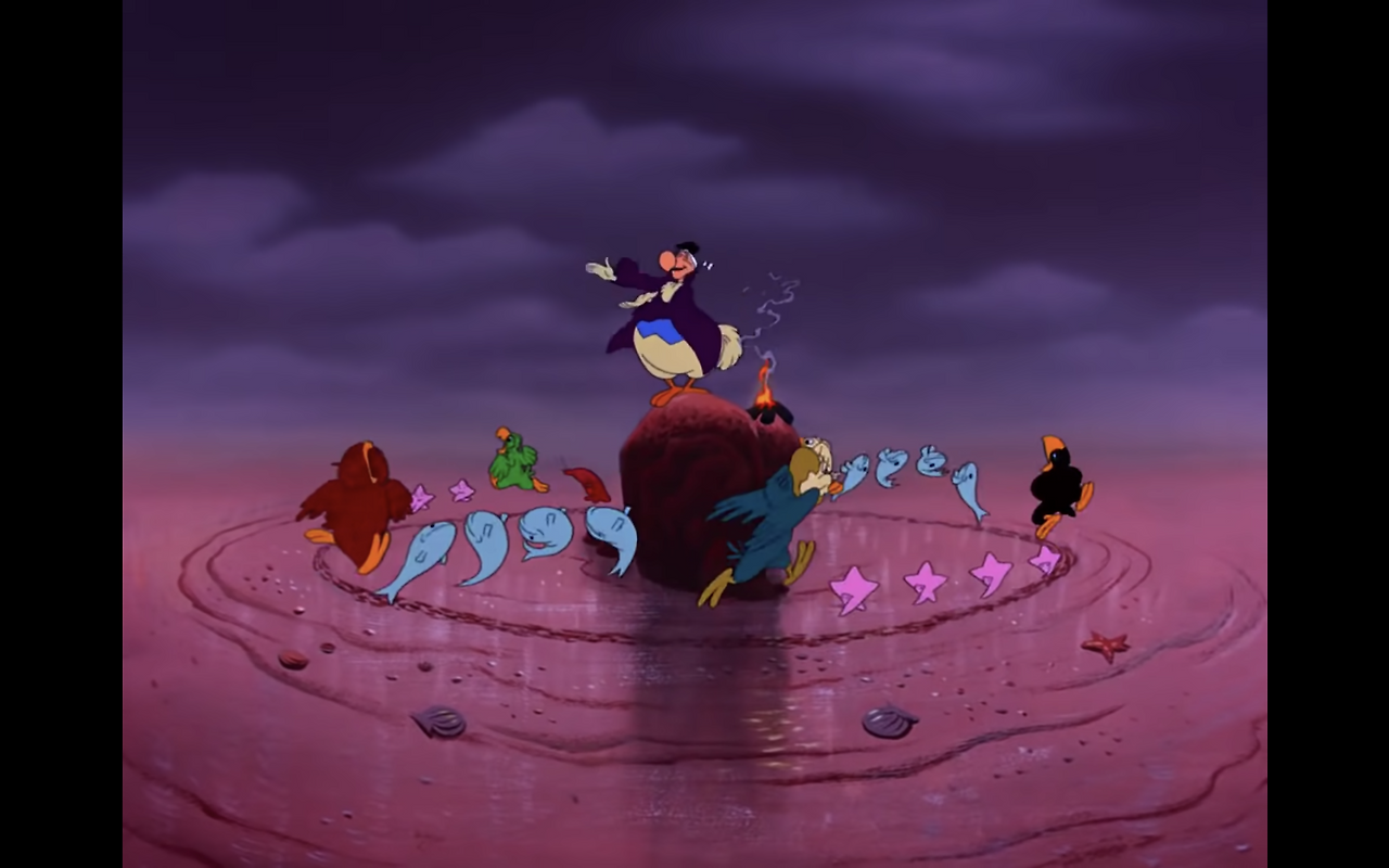 디즈니, <이상한 나라의 앨리스> : ① 바닷가에서 도도를 중심으로 열심히 도는 이상한 나라의 동물들.