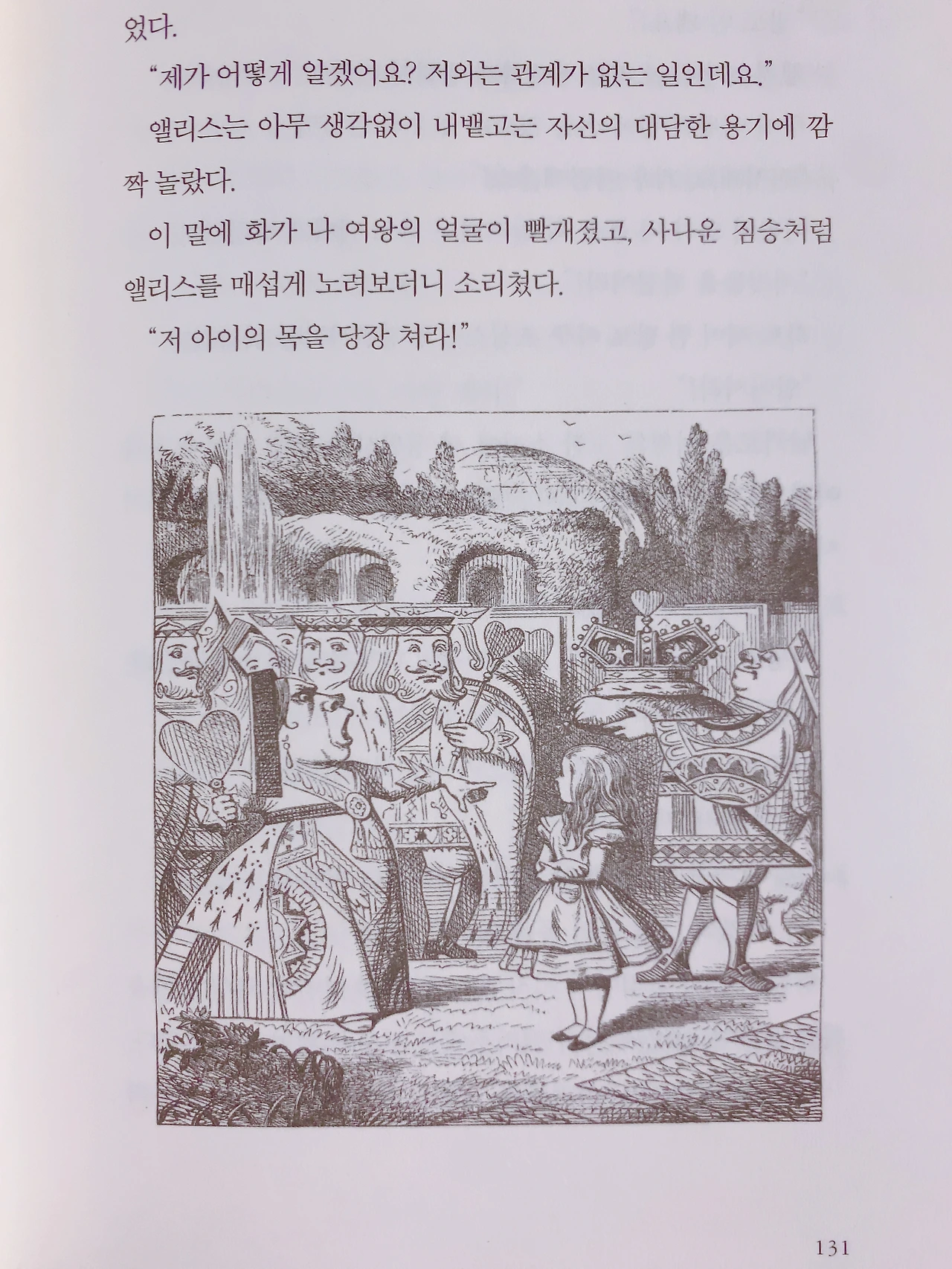 두 번째 이유에 대한 힌트는 그들의 소통 방식에 있다. 이상한 나라의 소통 방식은 한마디로 '불통'이다. 이상한 나라에서 앨리스가 묻는 질문에 제대로 된 답변을 해 주는 이는 아무도 없다. 정확한 메시지와 전달력이 부재한 알쏭한 대화들은 앨리스의 흥미를 끌어당기면서도 그를 화나고 갑갑하게 한다. 이 불통을 가장 대표적으로 상징하고 가장 극적으로 표현하는 장면으로 다과회에서의 폭죽이 터지는 광경을 꼽고 싶다. '안-생일(생일이 아닌 날)'이라는 말도 안 되는 일상을 축하하며 터지는 폭죽. 비처럼 내리는 폭죽의 잔해들 속에서 겨울잠쥐는 몽롱한 정신이 쏟아 내는 헛소리들로 이벤트를 마무리한다. 불통의 불똥 파티. 어째 요즘 나의 일상 같다.