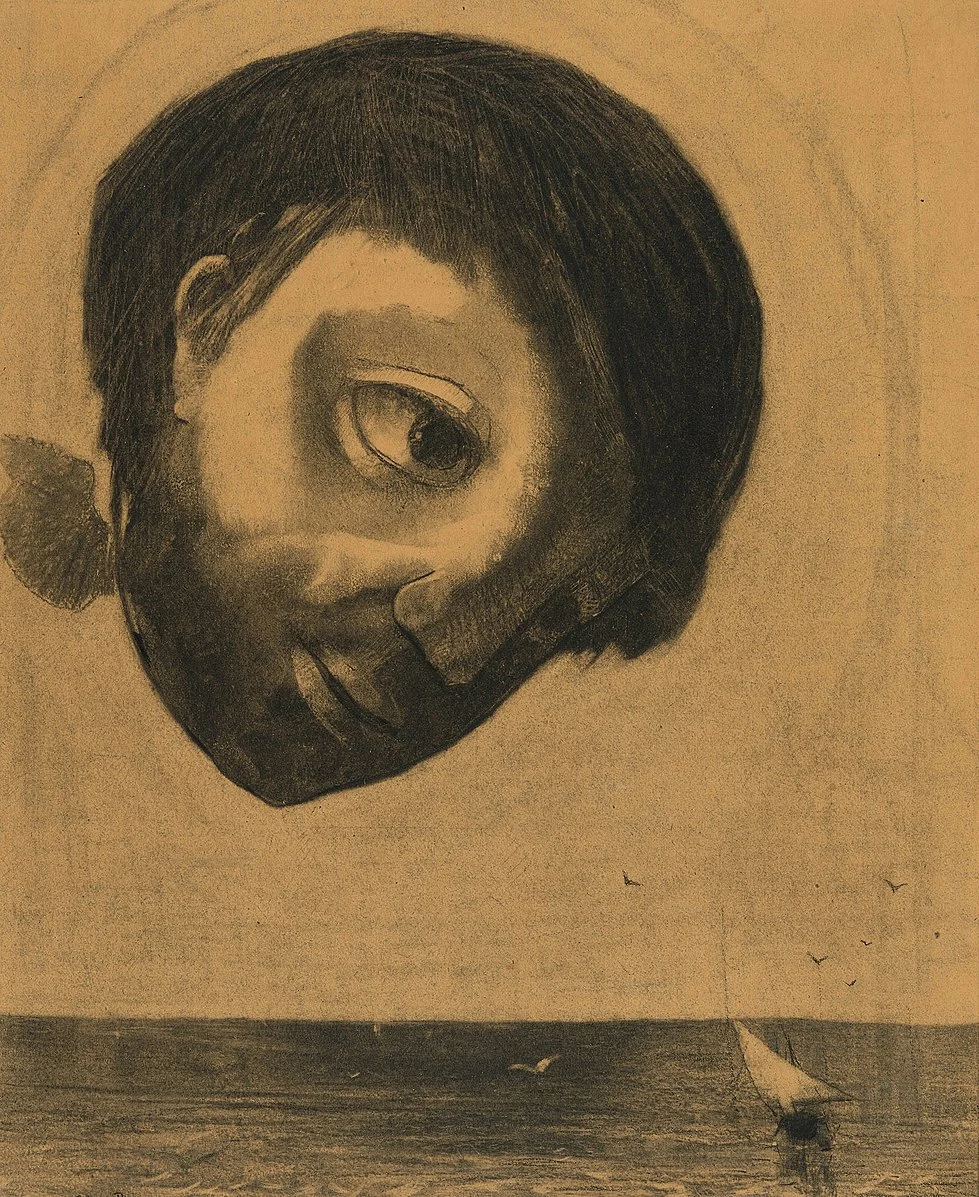 초현실주의자들이 선구자로 받아들였던 프랑스의 상징주의 화가 오딜롱 르동(Odilon Redon, 1840~1916)의 그림들은 유난히 '머리'에 대한 집요한 관심을 드러낸다. 특히 '검은색(Noirs)'이라고 스스로 지칭했던 초기 목탄화들에서는 신, 인간, 그 외의 동물과 규정할 수 없는 생물 사이의 경계를 괴기스럽고 혼란하게 오가는 머리들을 볼 수 있다. 물 위에 떠 있는 커다란 수호신의 머리가 되기도, 스스로의 손에 의해 움켜잡힌 채 하늘을 나는 악마의 머리가 되기도. 이 그림들을 보고 있다 보면, 어디에 있는 누구의 머리인지보다도 그것이 '머리'라는 사실이 더 중요해 보인다. 자유롭고 허전하게 떠다니는 머리. 자유롭고 허전하게 채우는 머리. 단지, 머리.