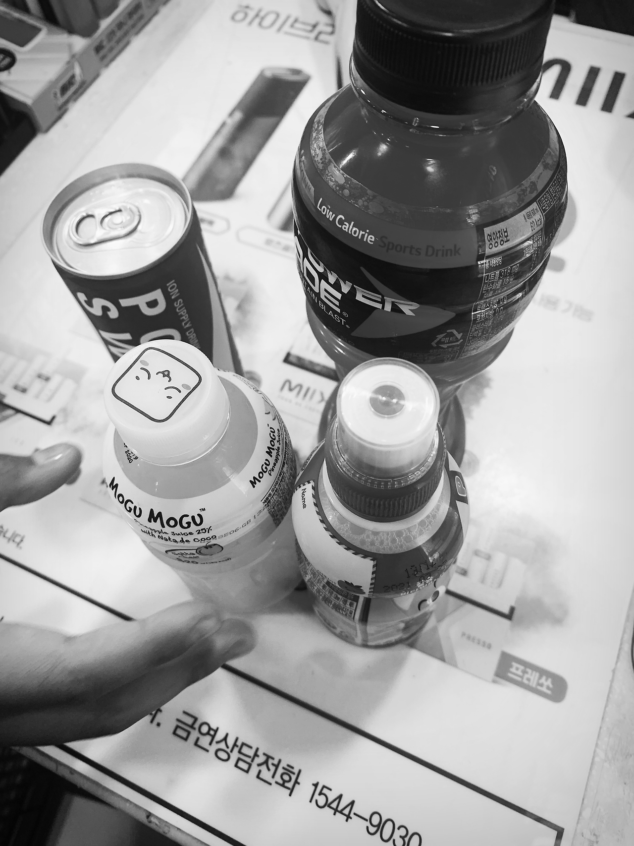 꼬맹이들은 낮에 아이스크림을 먹어서 음료수를 먹는다고 했다.
