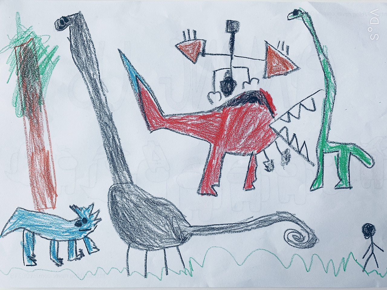 어제 작가님이 얼집에서 공룡 그림을 그려왔는데,