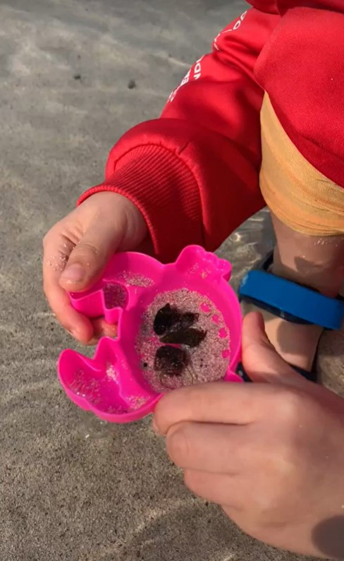 하랑이는 집에서 가져간 모래삽과 공룡 장난감으로 모래놀이를 하다가, 물이 필요했는지 조막만 한 삽에 물을 긷는다며 바닷물 속에 발을 담갔다. 발을 담그자 발 밑에서 고깔모자를 쓰고 가녀린 다리들을 분주하게 움직이는 소라게가 눈에 보였다. 원래부터 형 누나 따라 시골 냇가에서 물놀이 좀 해봤던 아이 마냥 소라게를 잡아내기 시작했다. 애초에 물을 길어오려고 챙겼던 노래놀이 삽 안에는 순식간에 스무 마리 남짓한 소라게가 모여 있었다. 우리는 보관하기에 마땅한 통을 갖고 있지 않았기에, 주변의 모래로 성을 쌓고 그 안에 물을 담아 소라게를 보관하기로 했다. 그런데 사상누각이라 했던가. 잡혀 있던 크고 작은 인질들은 순식간에 모래성을 부수고 탈출하기 시작했다. 아이와 나는 혼비백산하면서 눈에 보이는 인질들을 다시 잡아넣었지만, 그때는 이미 다시 넣을 성이 없어진 상태였다. 하랑이는 마지막까지 포기하지 않으며 물속을 첨벙거리면서 최선을 다해서 다시 잡아오고 있었으나 하랑이 바지는 물론 패딩 하단까지 젖고 있는 걸 보면서 나는 포기해야 했다