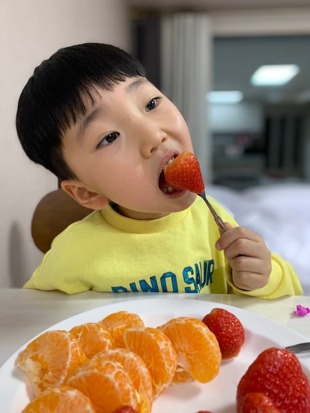 아이와 단 둘이 여행할 때에는 일정을 마치고 들어올 때 필요한 물건들을 사 오는 것이 중요하다. 아이 엄마라도 함께 여행한다면 아빠 혼자 슈퍼에 다녀올 여유가 되지만, 아빠와 아이 단 둘이 여행할 경우에는 둘이 함께 나갔다 들어오기를 반복하기 쉽지 않고, 그렇다고 아이 혼자 두고 근처 슈퍼에 다녀오기는 더욱 어렵기 때문이다. 우리는 저녁 먹고 근처 하나로마트에서 레드향, 요거트, 우유, 소시지 등 숙소 안에서의 비상식량을 사서 들어왔다.