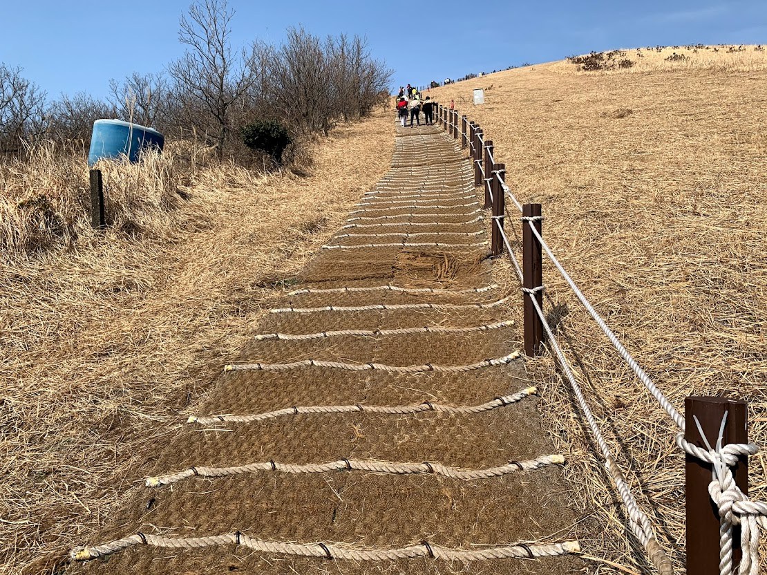 등반로가 잘 정비되어 있어 경로는 단순했지만, 경사와 높이가 상당하여 6살 아이에게는 조금 버거워 보였다. 완만한 구간에서는 뛰어서 갔고, 경사진 구간에서는 밧줄을 잡고 올라가다가 아이가 도움을 요청할 때 손잡고 올라갔다. 중간에 힘들다고 칭얼대긴 했으나 아이 스스로 끝까지 올라가고 싶다고 해서 끝까지 올라갔다. 성인 걸음으로 30분 정도 소요된다는데, 우리는 40분 정도 걸렸으니 꽤나 준수한 기록이라고 생각했다.