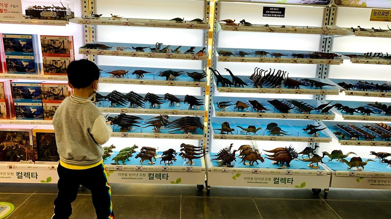 아이의 간절한 마음을 이기지 못하고, 공룡랜드로 향했다. 내가 볼 때는 다른 공룡 테마파크와 특별한 차이가 있는 것은 아니었지만, 티켓팅을 마치고 들어서는 입구에서부터 좋아서 어쩔 줄 모르는 아이를 보면서 저렇게 좋을까, 오길 참 잘했다.라는 생각을 했다. 아이는 공룡을 흉내 내면서 공룡하고 똑같은 포즈를 취하며 공룡 소리를 내기도 하고, 실제 크기의 브라키오사우르스 앞에서 사진을 찍어달라고 하기도 했다. 그리고 나오는 길에 기념품 샵에서 공룡 장난감에 눈을 떼지 못하는 아들에게 작은 공룡 장난감 몇 개를 사주었다.
