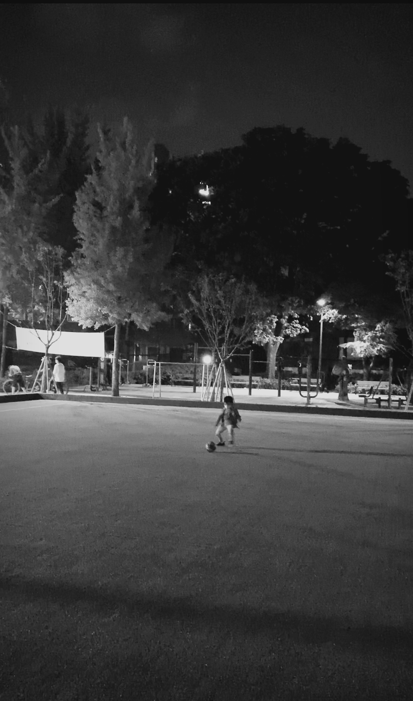 그 중 초등학생처럼 보이는 남자아이 둘이 축구를 하고 있었는데, 아들은 그 형들과 같이 축구를 하고 싶었나보다.아직 모르는 사람한테 먼저 가서 말을 걸만큼 사교성이 좋지는 못해 근처에서 쭈뼛거리는 아들을 대신해 "아저씨랑 같이 축구할까?"라며 같이 축구를 시작했다. 우리랑 같은 아파트에 살고 둘은 형제라고 했다.