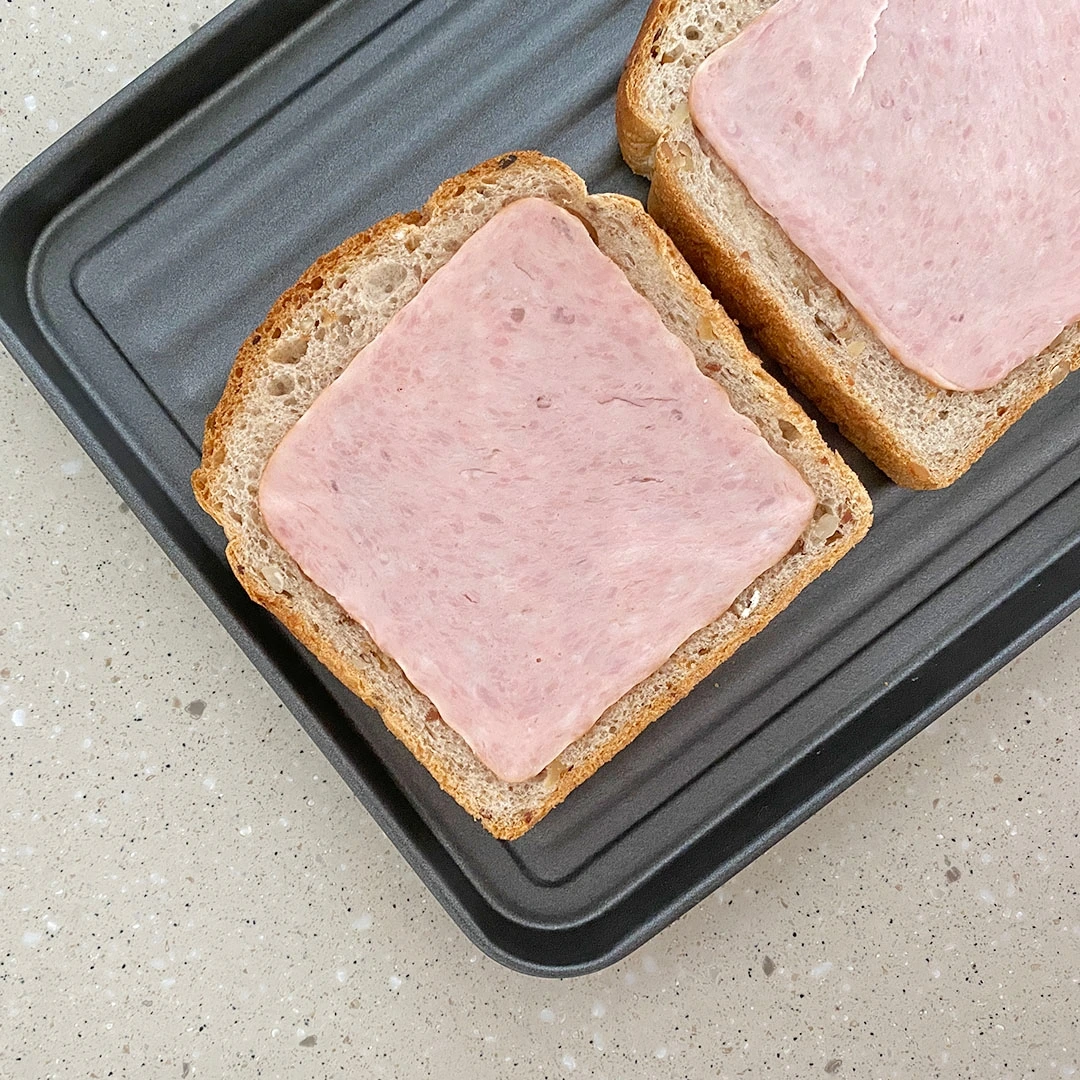 슬라이스 햄을 깔아 준다.