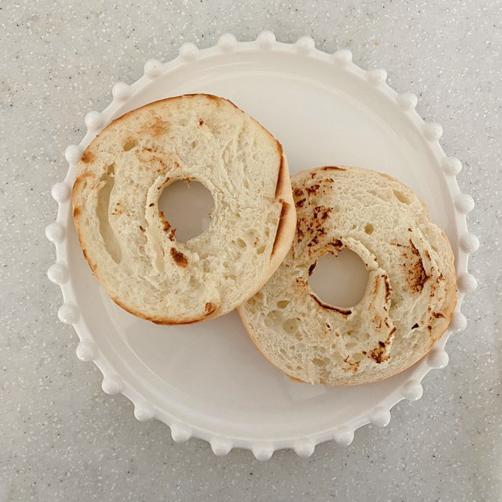 에그 베네딕트의 생명인 머핀이 동네 빵집에 없었다. 모닝빵을 사야 하나 싶은 순간 마치 나를 가져가 달라는 듯한 분위기를 자아내고 있던 플레인 베이글을 발견했다. 그래 뭐, 나 혼자 먹는 건데 뭐 어떤가. 사진처럼 이렇게 훌륭한 비주얼로 완성된 데다 왜 맛있는 건지 나도 놀라울 정도로 성공적이었다.