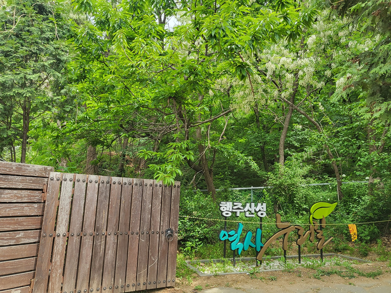 안내표지판에 행주산성 둘레길 가는 입구 표시가 없길래 주위를 두리번거리니, 동네 주민처럼 보이는 아줌마가 눈에 들어왔다. 길을 모를 땐 시간 낭비 말고 알 법한 사람에게 묻는 게 상책이다. 잽싸게 다가가 물었다.
