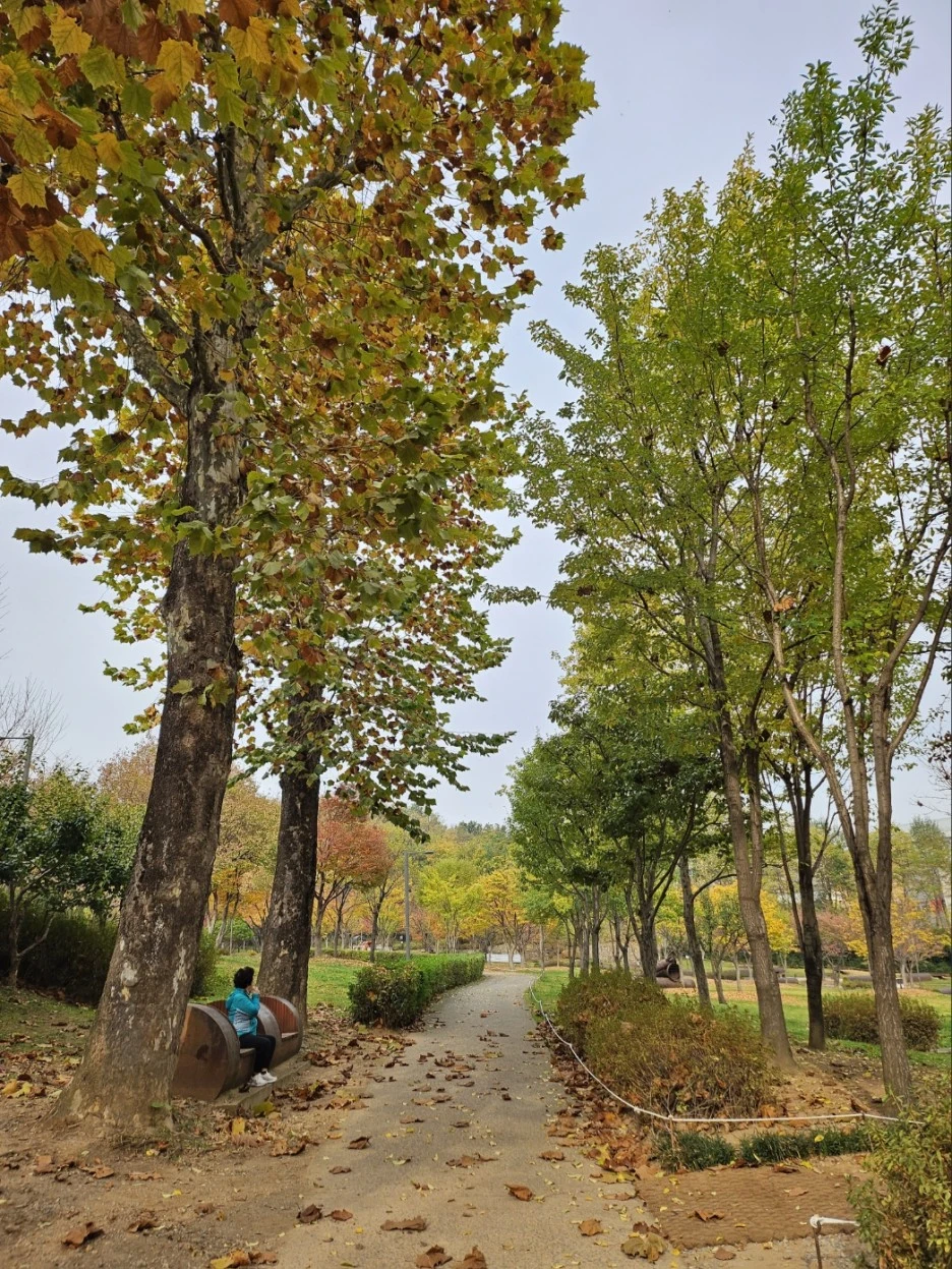 호수를 따라 산책로를 걷다 보면 가을이 호수에 비쳐, 어느새 마음에 반사된다. 특히 중앙호수에 비친 노란 은행나무 물결은 일품이다. 호수 가장자리에는 바깥세상의 소란스러움에도 아랑곳없이 낮잠을 자는 수련이 둥둥 떠 있다. 호수중앙에 일렬로 죽 늘어선 하얀 원형이 무엇일까? 궁금했는데 ‘소리분수’란다. 비행기가 지나갈 때마다 그 소리에 반응해 분수쇼를 펼친다. 10월까지만 운영하기 때문에 지금은 보지 못함이 아쉽다. 가만히 상상해 본다. 눈이 부시게 푸르른 10월 어느 날, 호수 위를 나는 비행기의 지휘에 맞춰 분수대가 하프의 현을 튕기듯 연주하는 모습을. 자연이 연주하는 최고의 공연이리라. 이곳에서 작은 음악회가 열리는 날 다시 와보고 싶다.