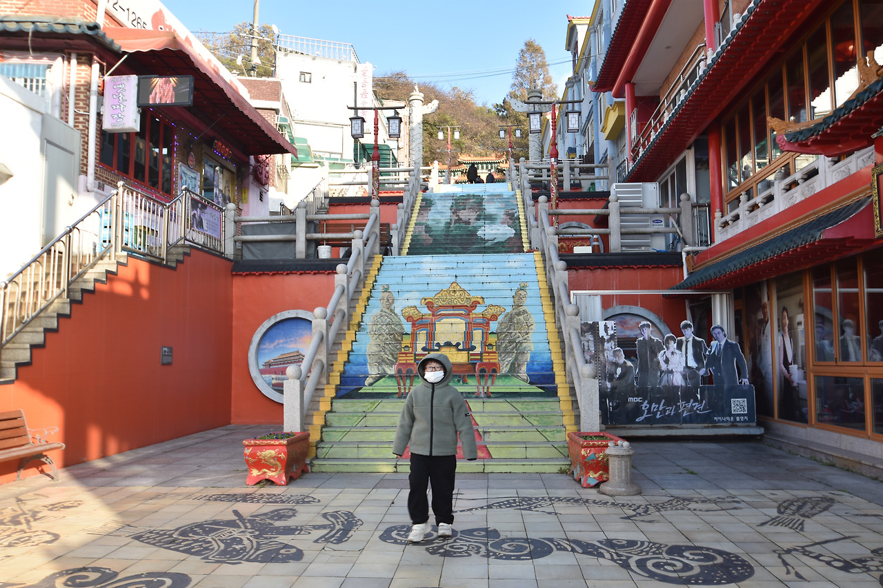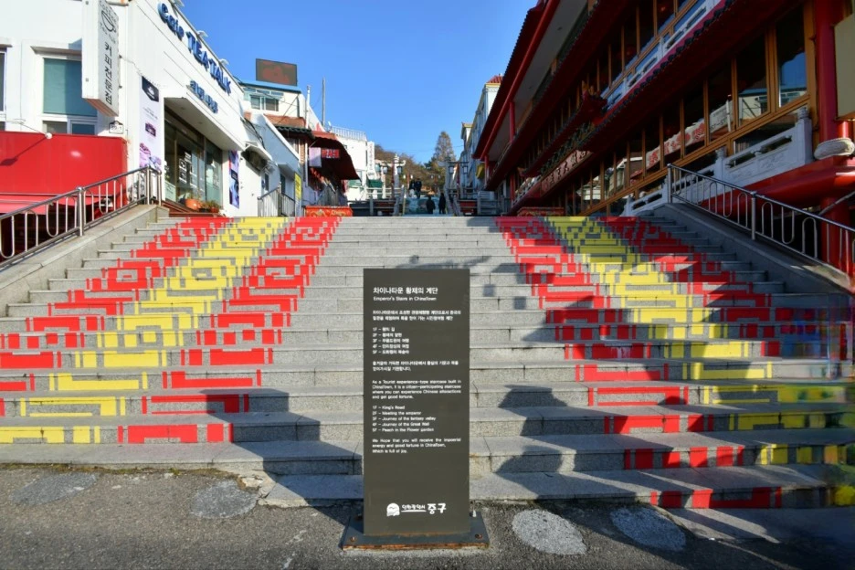 인천시 중구청 앞은 개항 시대 일본인이 거주하였던 일본 조계지다. 일본은 청나라보다 1년 앞서 조계지를 설정하였다. 계단하나를 사이에 둔 '청. 일 조계지 경계 계단'을 보면 씁쓸함이 인다.