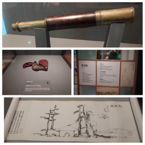 [이미지 2-2] 홍대용 관련 전시 및 김정희의 세한도: 담헌 홍대용은 지전설을 주장하며 조선의 우주관을 뒤흔든 선구자였고, 함께 배치된 ‘세한도’는 실학적 학풍이 예술적 고고함과 시대적 고뇌로 이어진 지점을 상징한다. 과학적 엄밀함과 예술적 깊이가 공존했던 당시 지식인 사회의 단면이다.