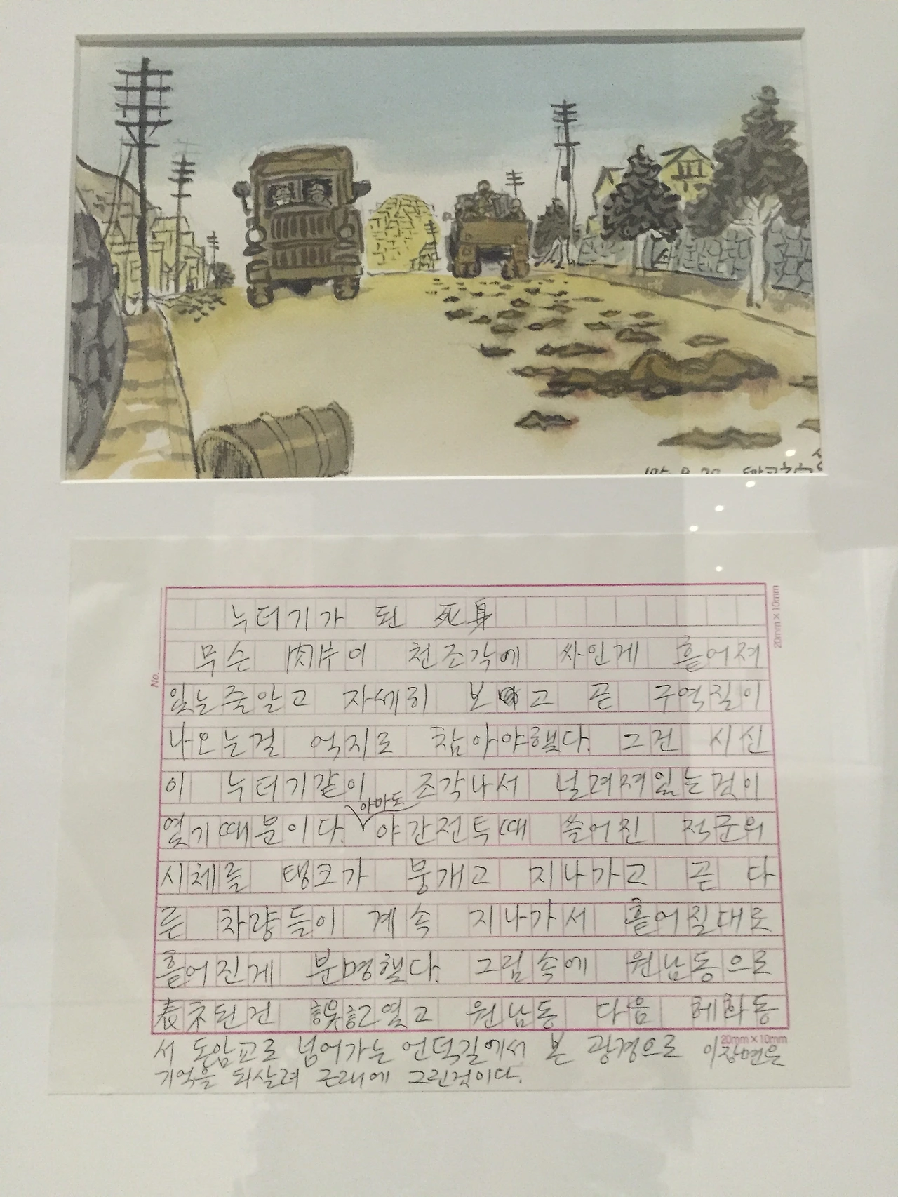 세계 2차대전 이후로 전세계적으로 앵포르멜 스타일의 미술작품이 발전했다고 한다. 우리나라도 예외는 아니다. 앵포르멜이란 전전(戰前)의 기하학적 추상을 거부하고 미술가의 즉흥적 행위와 격정적 표현을 중시한 전후 유럽의 추상미술이라 한다. 죽음이 길가에 널브러져있고 살기 위해 그 앞을 걸어가야만 했던 시기, 이념보다도 생존이 우선시되어야하는 시기에 무언가를 따라 그리지 못하고 ‘아무것’도 그리지 않고 싶어하는 그 마음이 십분 이해가 되었다. 자신의 주위에 존재하는 것을 보고 그리는 구상화를 그리기에 세상은 너무 참혹했다.