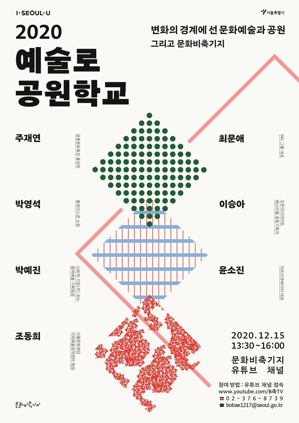 12월 15일, 지속적으로 변화하는 공원의 역할을 고민하고, 문화 예술 패러다임 변화를 논의하는 온라인 집담회가 열렸다. 문화비축기지 공식 유튜브 채널 ‘B축TV’로 생중계한 행사에서는 문화 예술과 공원이 관계 맺는 방식의 변화를 주제 강연과 사례 발표를 통해 살펴보았다. 코로나19 발생 이후 문화비축기지에서 기지에서 진행한 드라이브 스루 서커스 공연, 언택트 방식으로 시도한 전시와 축제 또한 되짚었다. 이 자리에서 나온 코로나19 시대에 지속 가능한 문화 예술을 고민하는 현장 관계자들의 이야기는 결과 자료집을 통해 살펴볼 수 있으며, 참가자의 발제 영상은 1월 중 B축TV 채널에서 공개한다.