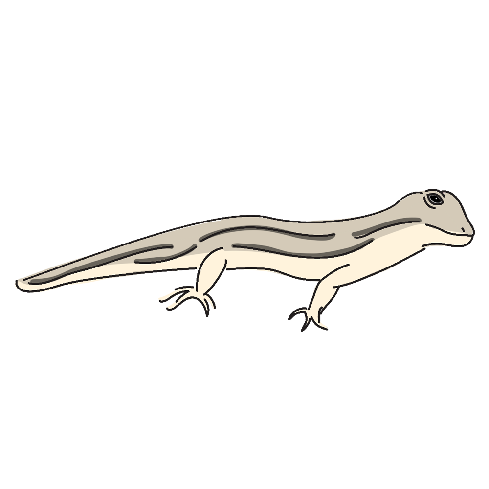 앞다리 두 개를 거의 사용하지 않아 언뜻 보면 다리가 4개 밖에 없는 것처럼 보인다. 도시의 개천이나 낮은 산지에 서식한다.