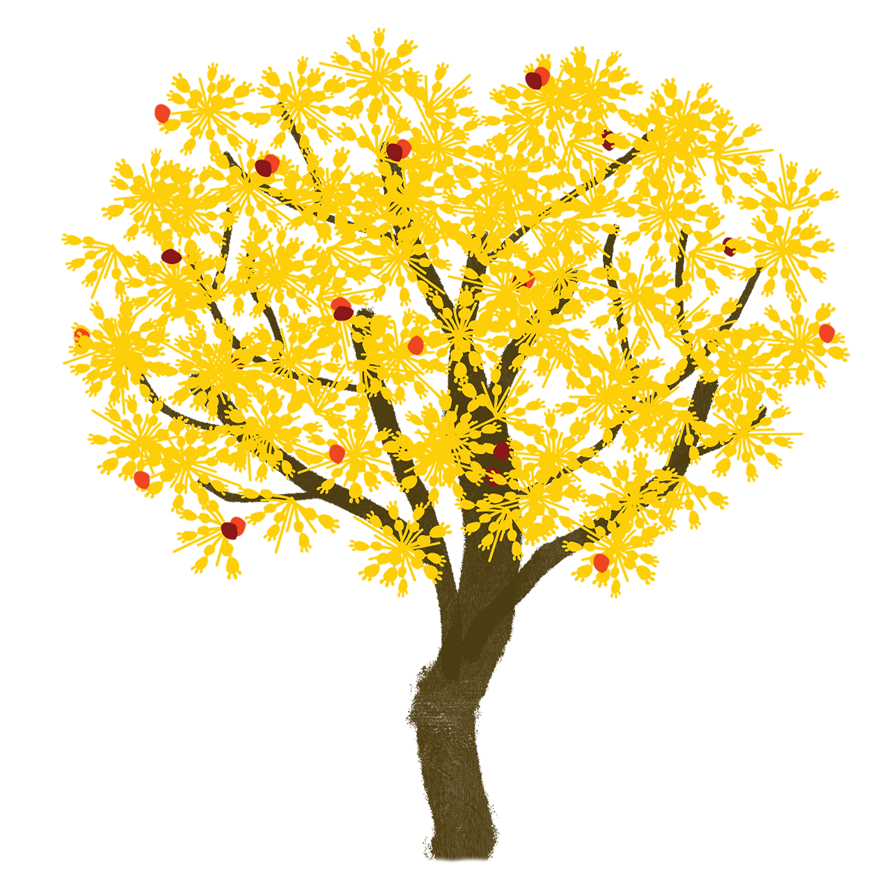 이른 봄에 잎보다 먼저 노란색 꽃이 핀다. 열매는 빨갛게 익어 겨울에도 떨어지지 않고 모습을 유지한다. 완전히 익은 열매는 씨를 빼고 말려 약재로 사용한다.