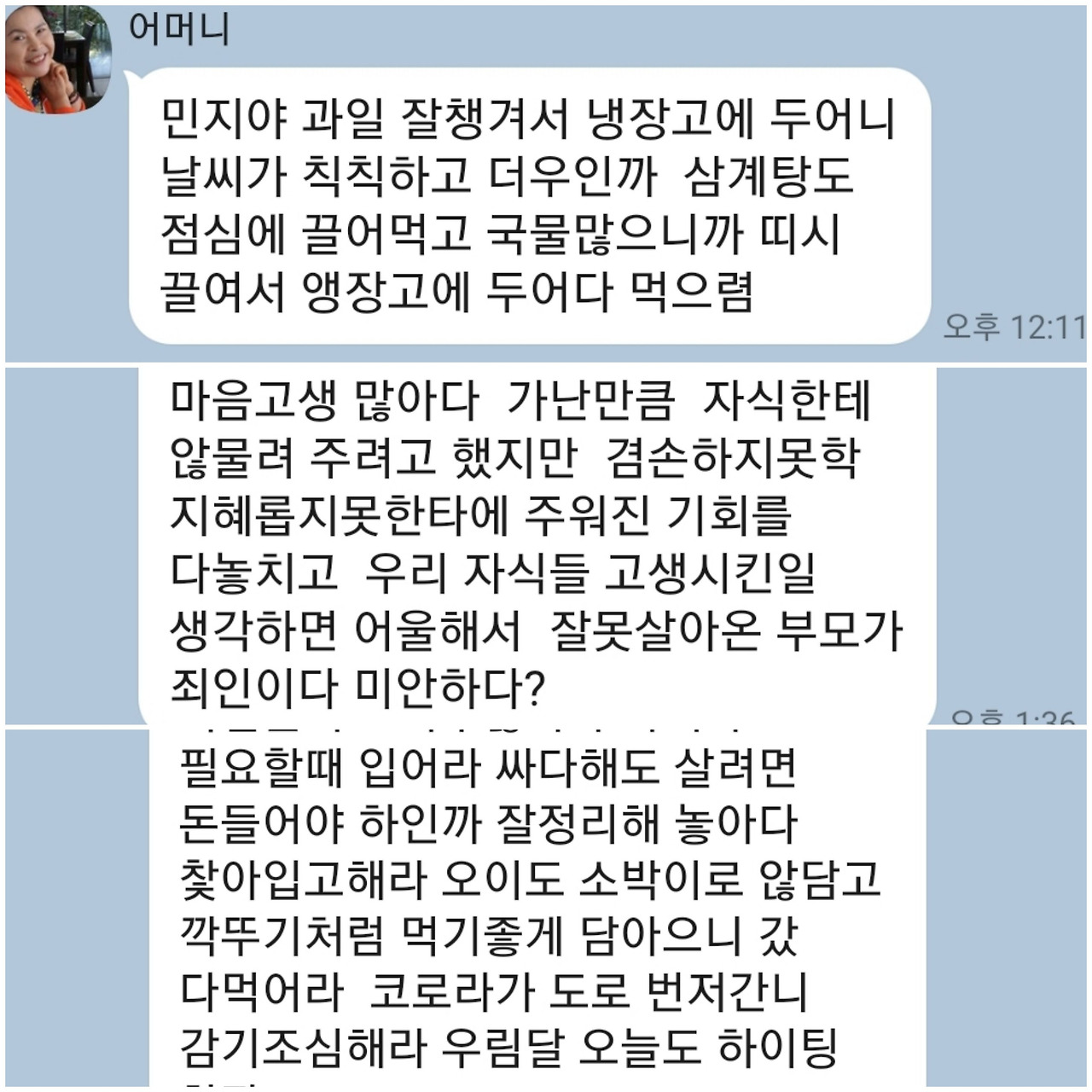 엄마가 안쓰럽고 힘들까 봐 걱정되고