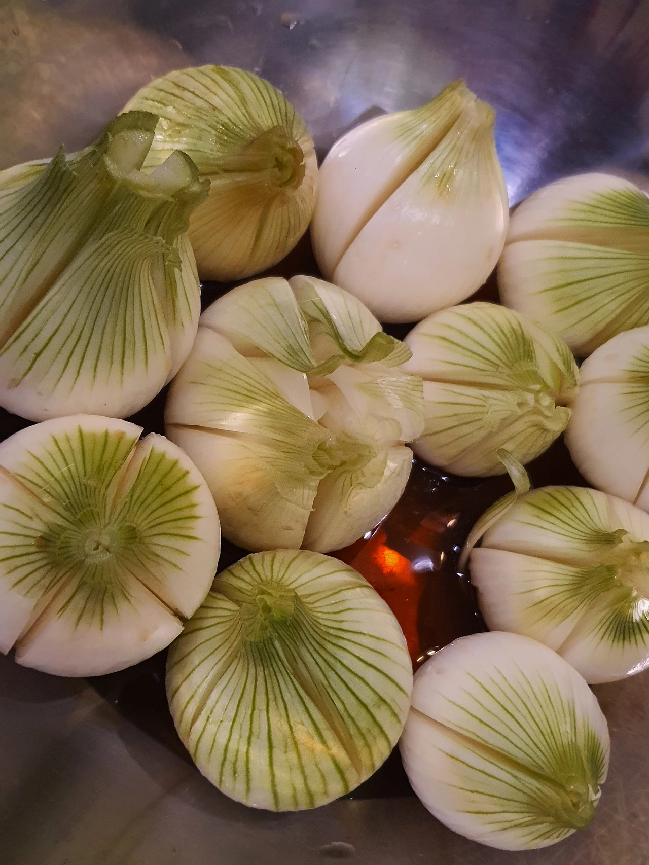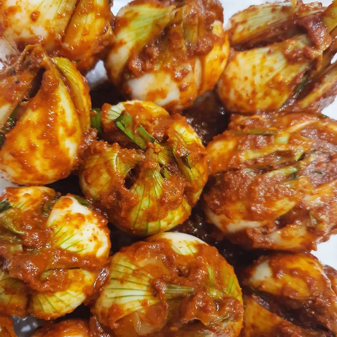 육젓이 똑 떨어져서 아쉽지만 일단 양파 사이사이에 양념을 잘 발라 넣어주었다.