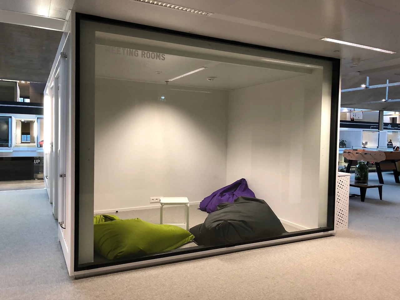 이 공간에는 여러 가지 혁신적인 요소들이 공간 곳곳에 숨어 있는데 출입구 앞에 있는 anticafe도 재미있는 운영 구조를 가지고 있다. 이곳은 시간제로 운영이 되는데 한 시간에 5유로이며 다양한 음료와 간식들이 구비되어 있고 편안하고 창의적인 디자인으로 공간이 구성되어 있다.