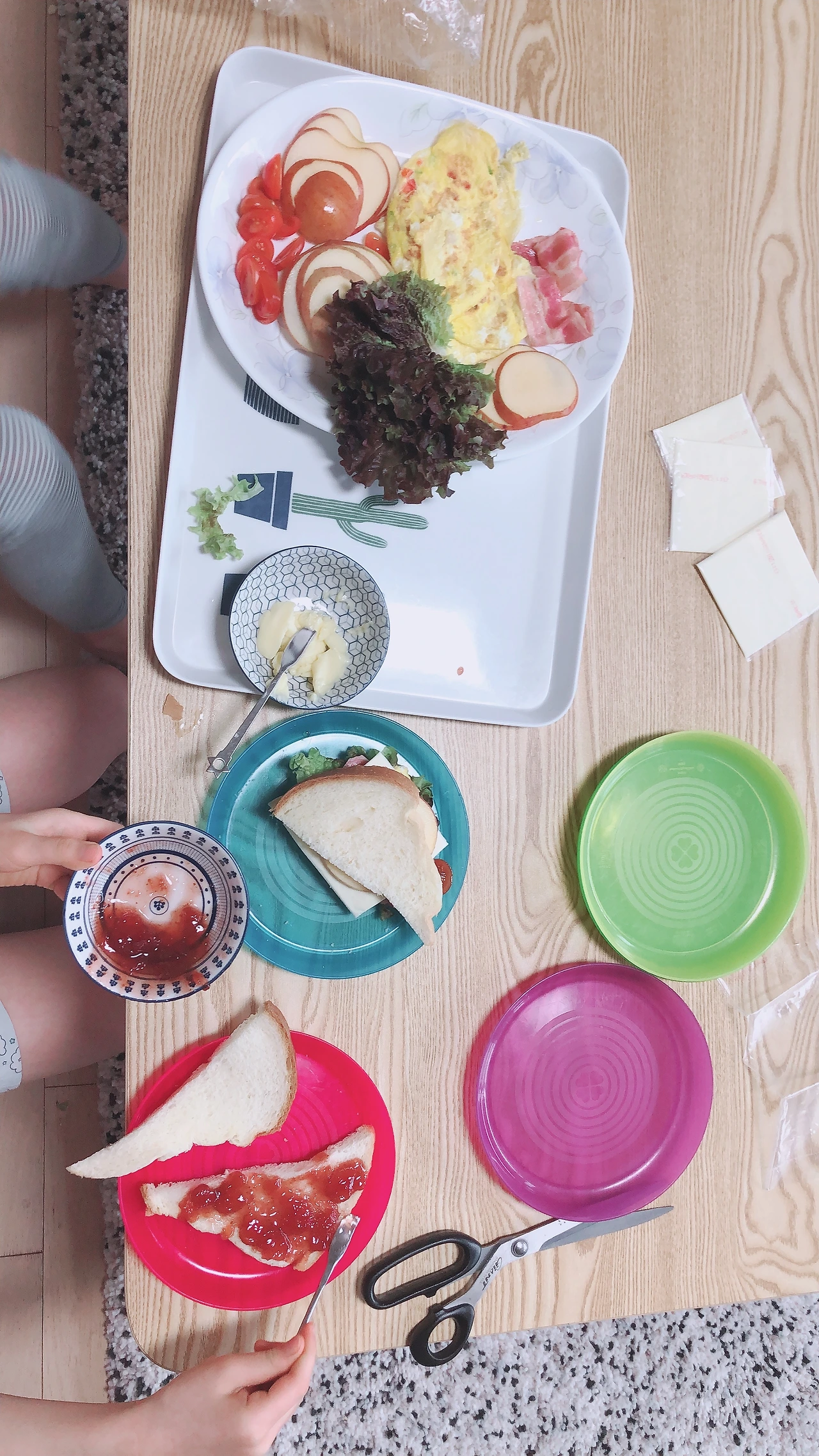 아침에 스스로 샌드위치 만들기. 예쁘게 안나오는 현실 사진.