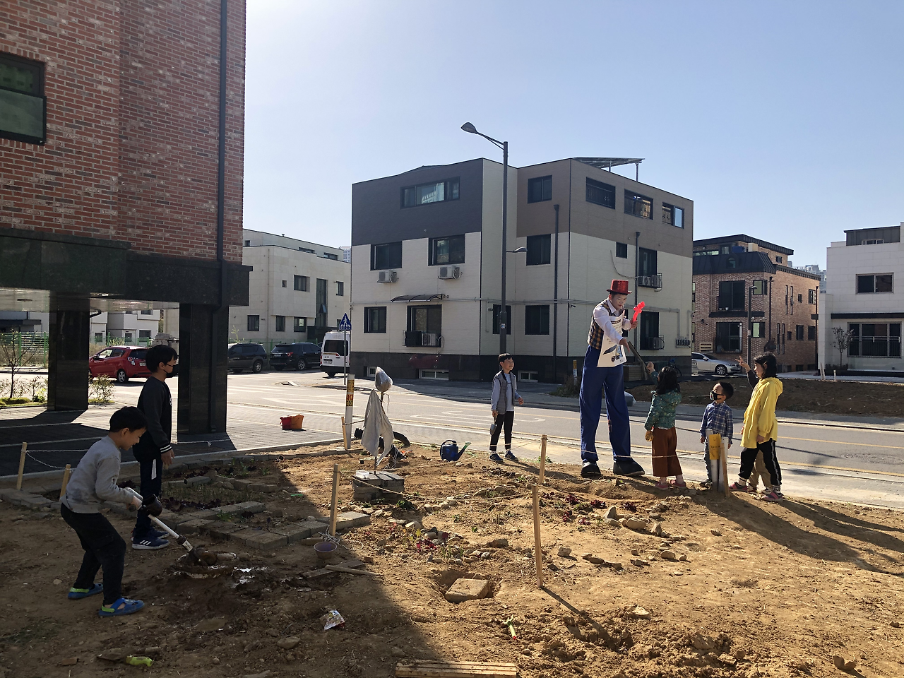 흙에 물을 잔뜩 뿌려서 진흙을 만들어 도넛 모양도 만들고, 댐도 만든다. 아이들이 항상 모여 있다 보니 가게 홍보하러 나온 키다리 아저씨를 만나기도 한다. 선물로 풍선을 받으면, 그걸로 뭘 하고 놀지 궁리하며 또 논다. 끊임없이 놀거리를 창조해낸다. 늘 놀라움의 연속이다.