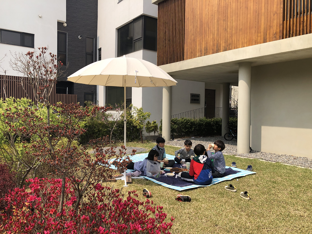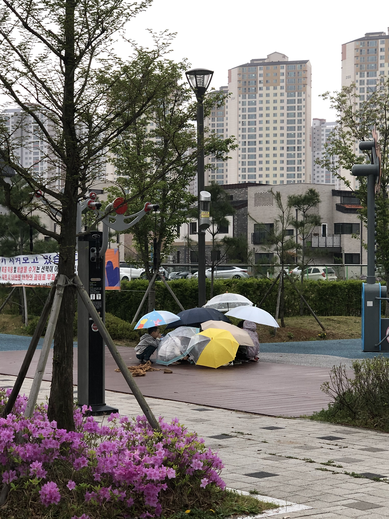 학교도 안 가고, 학원도 안 가고, 여행도 못 가니 동네 놀이터만 주야장천 간다. 키즈카페, 수영장도 안 가니 동네 놀이터밖에 갈 곳이 없다. 집 바로 앞에 있는 놀이터를 두고, 굳이 다른 동네 놀이터로 원정을 떠난다. 주택 인근에 있는 놀이터에는 놀거리가 무궁무진하다. 그저께는 개구리를 잡아서 개구리 계곡을 만들었고, 어제는 줄다리기와 피구를 한 뒤 미끄럼틀 밑에 아지트를 만들었다. 플라스틱 통에 개미를 담아 개미굴을 만들기도 하고, 박스를 보드 삼아 미끄럼틀을 타기도 한다. 비가 오는 날엔 서로 우산을 포개러 거대 텐트를 만들고, 종알종알 아이들만의 세상에 빠진다.
