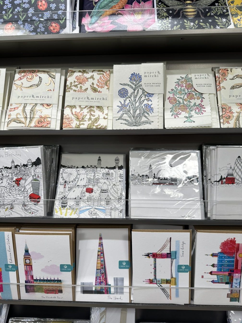 런던을 다니며 느낀 특징 중 하나는, 서점이 많고 어디에서나 카드를 판다는 것이었다. 이 기차역 안 작은 소품 가게에도 각양각색의 카드가 반짝였다.