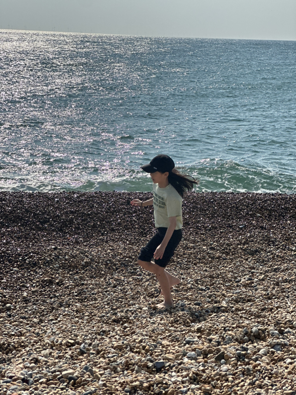 고딩이들 같아 보이는 영국 아이들은 바지를 입고 해변에 뛰어들었다. 그런 자유로운 아이들을 2호는 신기한 눈으로 마냥 쳐다보았다.