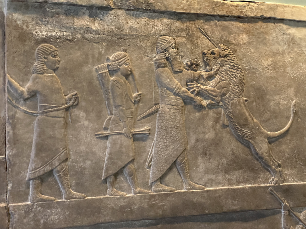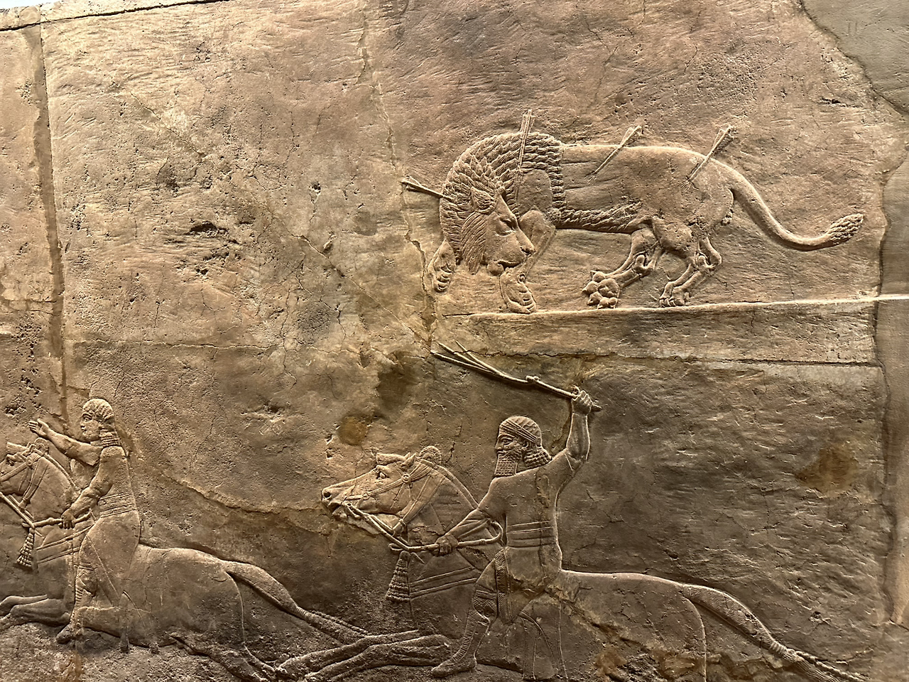 벽에다 새긴 사자 사냥을 하는 모습의 부조는 섬세함과 웅장함에 전율이 느껴졌다. 근육의 움직임, 머리카락 한올 한올을 돌위에 새긴 섬세함은 가히 예술 작품이라고 해도 모자람이 없다. 특히 특별전을 하고 있어