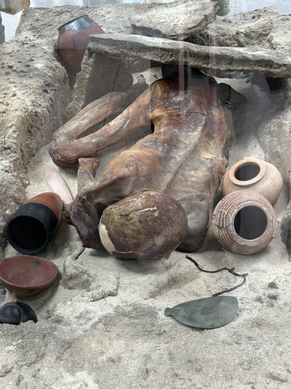 특히 충격적이었던건 이집트 사막의 환경으로 자연건조 되어 붕대도 안감긴채 엎드려 있는 미이라였다. 리얼한 미이라를 보니 어딘가에 그의 영혼이 숨쉬고 있을 것만 같아서 오싹하게 느껴졌다.