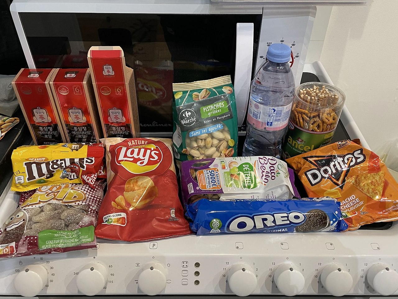 7시가 되고 문을 열자마자 슈퍼 오픈런을 한 우리는 과자, 과일 조금, 물 등등을 담고 캡틴이 찾아두었던 빵집을 들러 잠봉뵈르 샌드위치랑 이름모를 빵, 크로와상과 뱅오쇼콜라를 잔뜩 담아 들고 숙소로 돌아왔다.