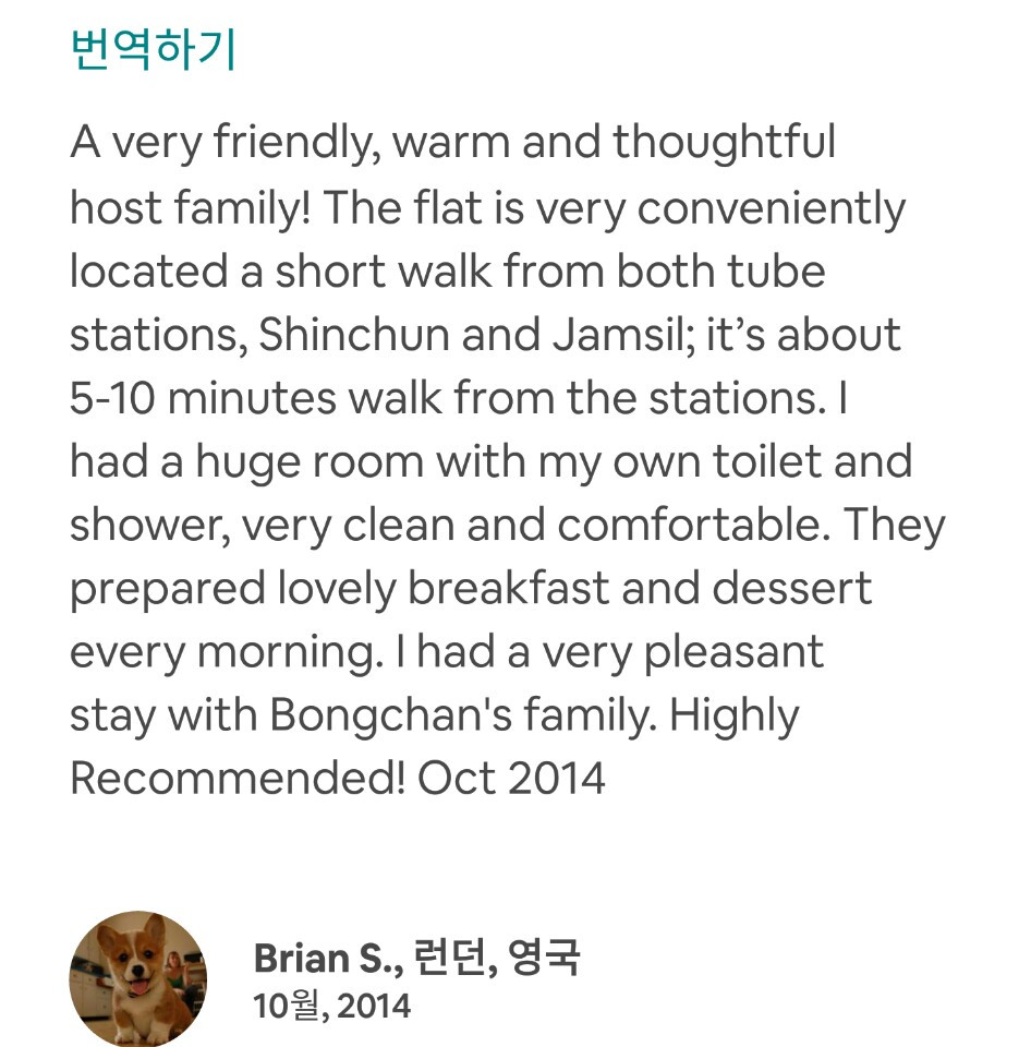 한국에 오는 이유도 각양각색이었다. 홍콩 대학교수라는 아저씨는 마라톤 매니아로 대회에 참가하기 위해서 굳이 서울까지 왔다. 때마침 홍콩여행 계획이 있었던 우리는 이런저런 현지인 맛집도 물어보고 여행 꿀팁을 몇개 전수받을 수 있었다. 펜싱을 하는 호아퀸은 유난히 귀족스러운 분위기를 풍겼는데 아이와 남편은 펜싱경기를 직접 보러가기도 했다. 하필 메르스때 삼성병원으로 인턴쉽을 하기 위해 미국서 건너온 재미교포 아가씨는 우리를 공포에 떨게 하다 결국 인턴쉽을 중도에 포기하고 미국으로 돌아가야 했다.
