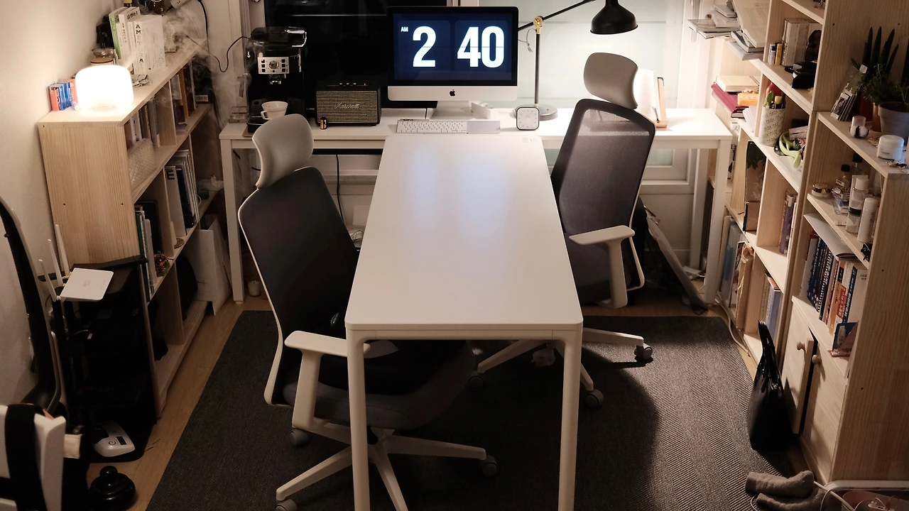 논의 끝에 아내 의견에 따라 거실에 T자 형으로 책상을 두었다. 거실 중앙을 나누는 긴 책상을 마주 앉아 나눠 쓴다. 이렇게 지내보니 공부하든, 작업하든, 일하든, 밥먹든 간에 테이블 위 모든 것이 ‘마주 보는 대화’로 이어진다. TV스크린 한 방향을 보며 나누던 대화와 질과 양에서 크게 다름을 느낀다.