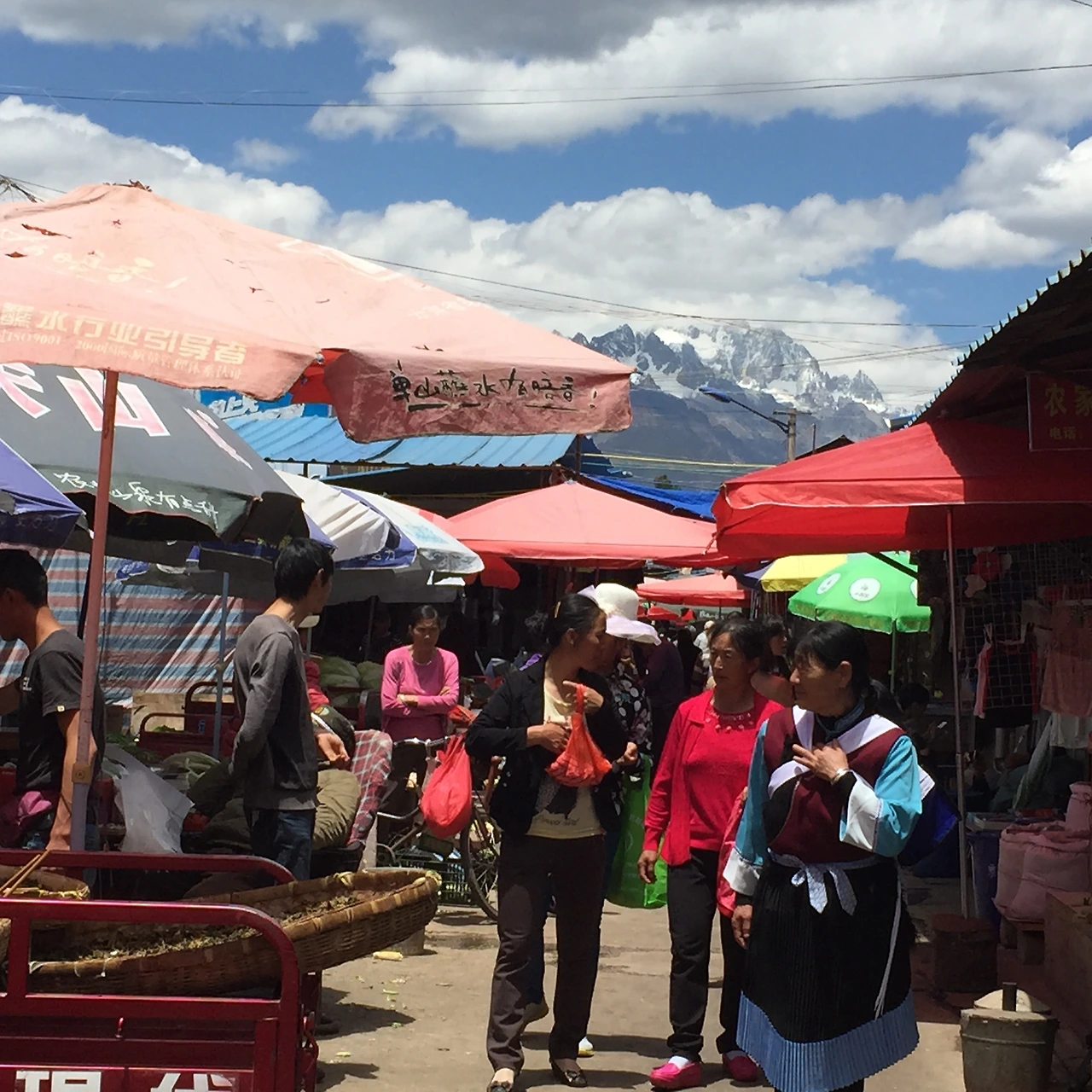 중국 대도시와 달리 리장은 아직까지 정겨운 풍경이 남아있는 동네이다. 시장에 가면 동네분들이 편안한 복장에 마치 대물림된 듯한 낡은 시장바구니를 메고 장을 보시는데, 마치 우리 예전 시골 장터를 떠올리게 하는 분위기이다. 그리고 한국 돈 만원이면 육류와 과일을 포함한 장보기 플렉스가 가능한 물가.