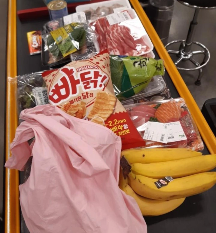 그러곤 나도 이유가 있다는 듯 한껏 장 봐 온 장바구니를 가리키면서,