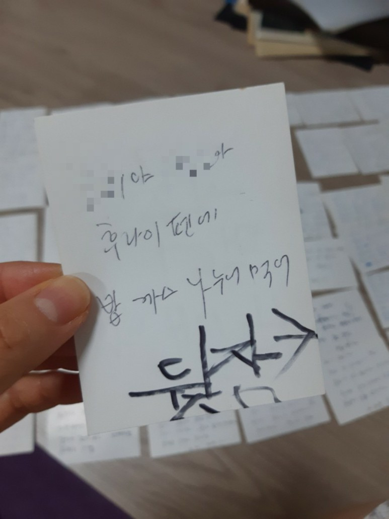 이 쪽지에는 그녀의 마음이 담겨있다. 매일매일 바쁜 와중에도 짬을 내어 메모를 남겼던 이유.