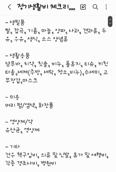 그 다음은 쇼핑하는 곳을 품목별로 목록화해보는 거다. 예를 들면 우리 집은 주기적으로 사야 하는 치약, 칫솔, 휴지, 샴푸 등의 반복해서 사서 쓰는 제품들은 구입하는 제품과 구입처를 정해둔다. 그러면 매번 살 때마다 검색하거나 마트에 가서 충동적으로 사지 않을 수 있고, 세일한다고 해서 쟁여놓지 않게 된다.