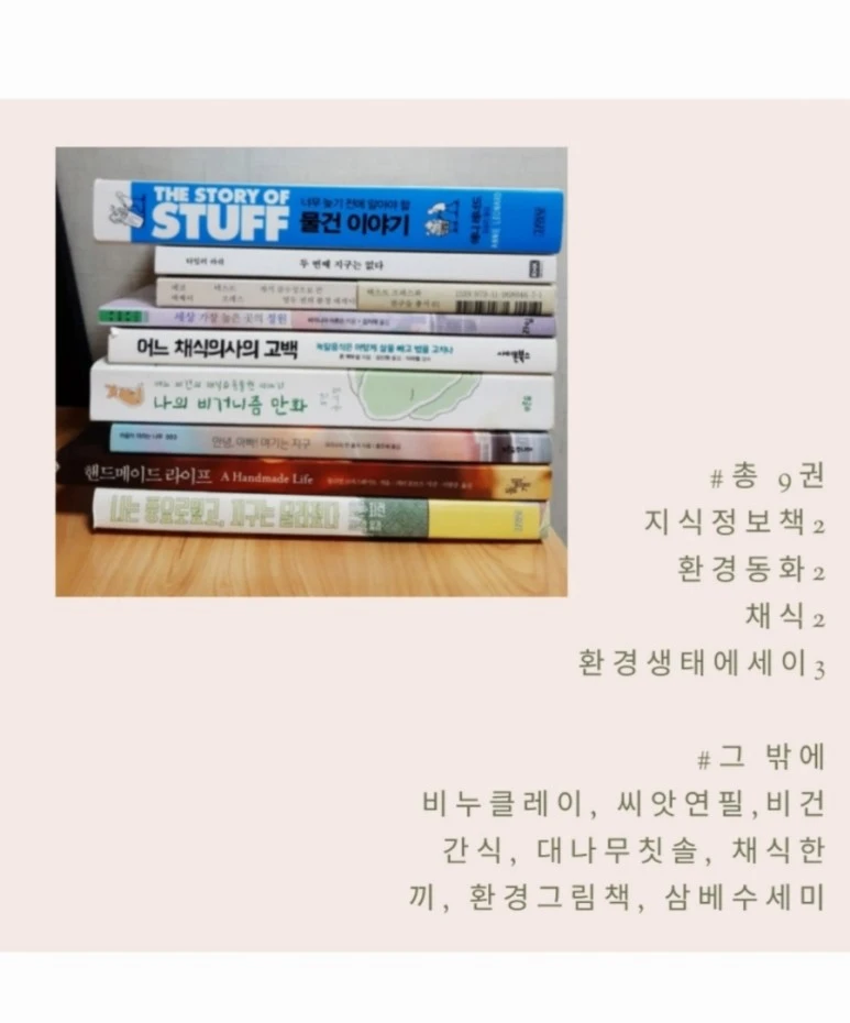그리고 무엇보다 소비에 대한 인식을 전환하게 된 계기는 1년 넘게 환경문제와 관련된 책들을 읽는 것이 가장 큰 도움이 됐다. 조금씩 관련된 책들을 읽다 보면 특히 우리나라가 얼마나 소비중심지향적인 사회에 놓여있는지, 그러면 개인은 어떤 방향으로 소비생활을 지향해야 하고 아이들의 교육도 바로 잡아줘야 하는지 알 수 있다. 내가 먹었던 컵라면이, 초콜릿이, 커피가 지구반대편의 누군가의 고통과 희생의 결과물이라는 걸 알게 된다.